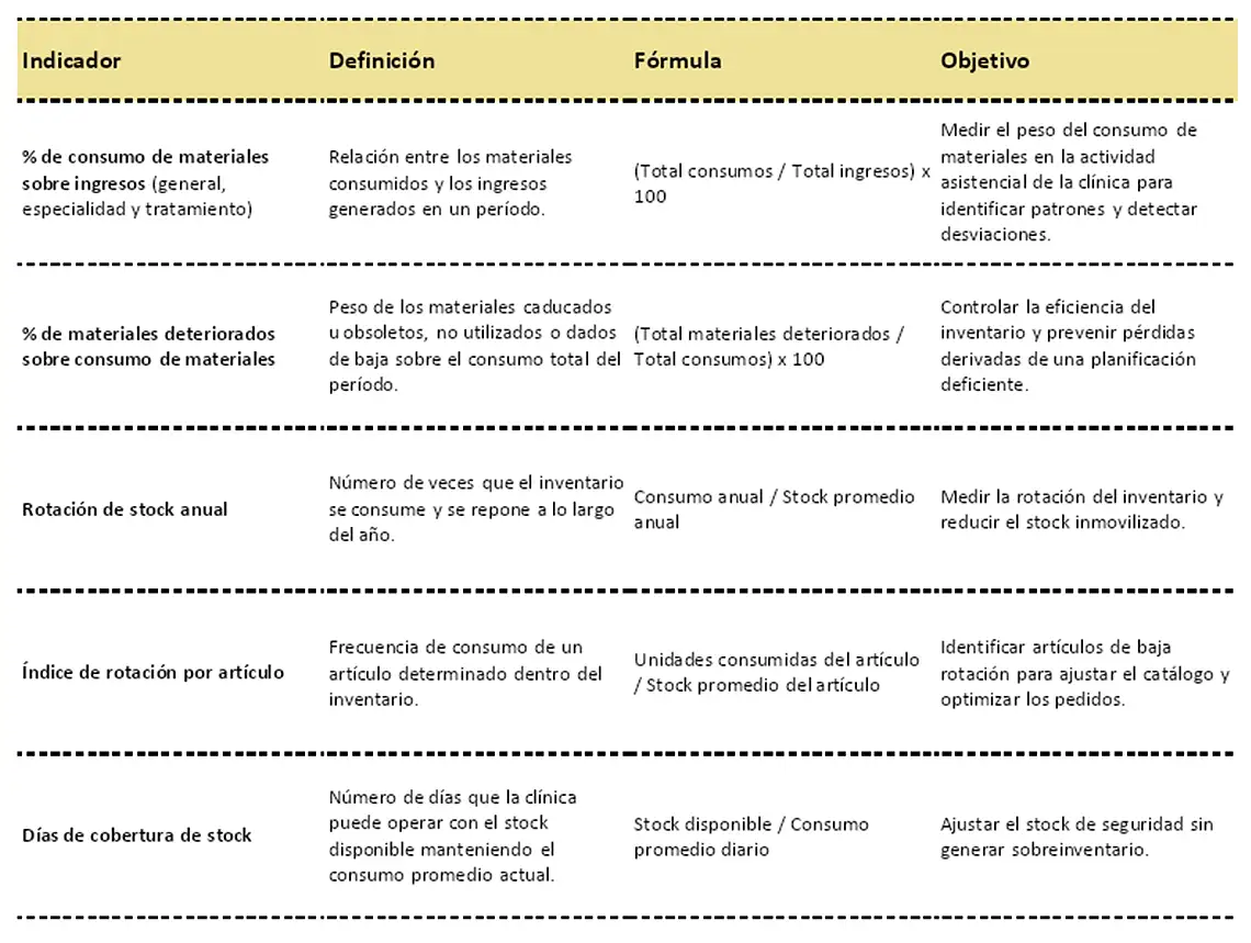 Clave de control de gestión: definir un catálogo de materiales de máxima calidad, aprobado por la dirección médica y segmentado por especialidad y tipo de tratamiento, con excepciones justificadas y revisiones periódicas.